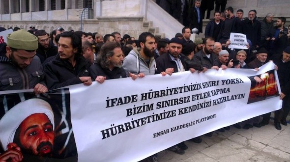 Charlie Hebdo katliamının sorumluları terörist Kouachi kardeşler için Fatih Camii’nde gıyabi cenaze namazı kılan grup katillere ve El Kaide’ye övgüler düzerken, bir yandan da tehditler savurdu.