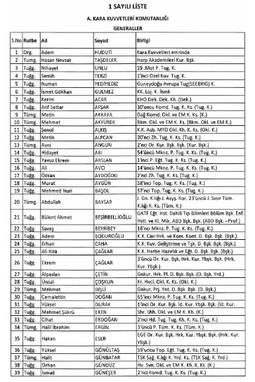 ihraç edilen subaylar tam liste