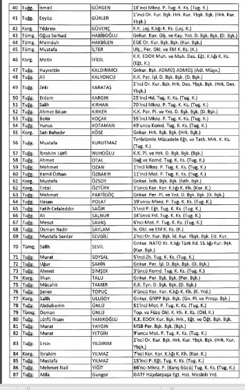 ihraç edilen subaylar tam liste