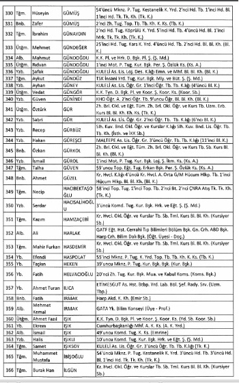 ihraç edilen subaylar tam liste