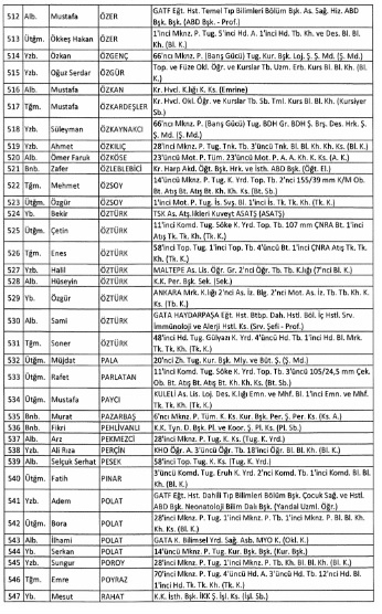 ihraç edilen subaylar tam liste
