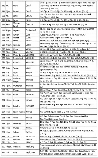ihraç edilen subaylar tam liste