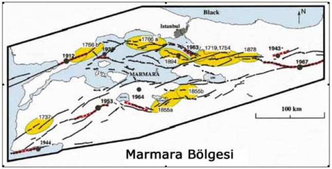 Araştırmada, bu fayın “yıkıcı” ve “aktif” olduğu belirtiliyor. Marmara fayının özellikle de İmralı fayı en canlı bölümlerden biri olduğu tespit edilirken, Marmara’nın batısında Çınarcık’a kadar uzanan fay uzunluğunun tam 110 kilometre, ikinci fayın ise 85 kilometre uzunluğunda olduğu ve her iki fayında aktif olduğu belirtildi.