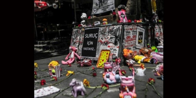 Suruçta 30’dan fazla gençin ölümüne neden olan patlamadan sonra gençlerin götüreceği oyuncaklar sergilenmeye başlandı. Oyuncakların hüzünlü hali izleyenlerin gözyaşlarına hakim olamamasına yol açtı.