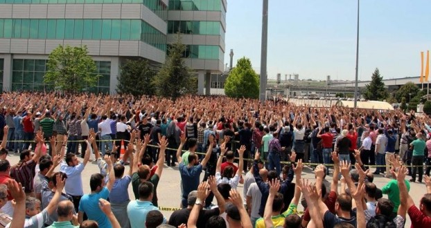 Bursa'da dalga dalga yayılan metal işçilerinin direnişi, üretim durdurma eylemleriyle sürüyor. Gece Renault'ta üretimi durduran ve yaklaşık 22 saattir üretim yapmayan işçilerin ardından Tofaş'ta da üretim durduruldu.