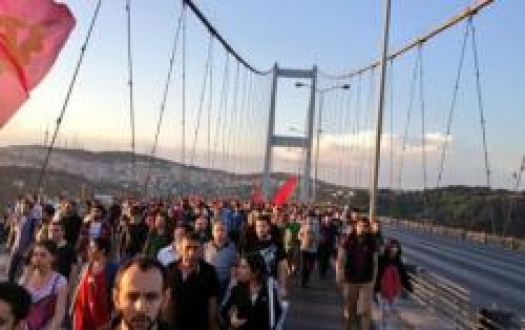 Bir grup protestocu Kadıköy’den yürüyüşe başlayarak Boğaz köprüsünü yürüyerek geçerek Gezi Parkına geldi